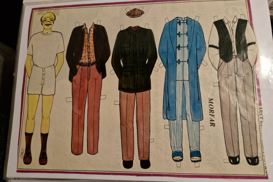 Klippdocka med olika klädesplagg. Perfekt för samlare eller som en nostalgisk leksak.
