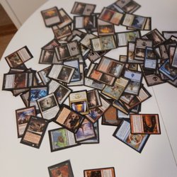 Hittade ca 100 Magic The Gathering kort här hemma i gömmorna. Spelade ett kort tag, korten verkar vara från 1995, utöver lådan så verkar jag ha köpt några lösa pack också, förmodligen från samma år. Korten är spelade med, tyvärr verkar en del dragit åt sig fukt (se sista bilden för "worst case"). Totalt ca 20 kort som är mer eller mindre drabbade av fukt.