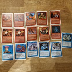 Magic The Gathering kortlek med blandade kort. 18 stycken. Alla kort ligger i ett varsitt skyddsfodral. (2).