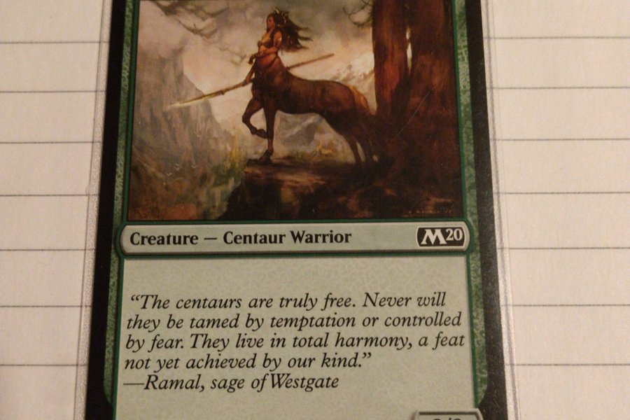 Kortet är av typen "Creature - Centaur Warrior" och har en styrka/tålighet på 3/3. Mana-kostnaden är 2 och 1 grön mana. Kortet är från upplagan M20 och har kortnummer 168/280. Konstnären är Vance Kovacs.