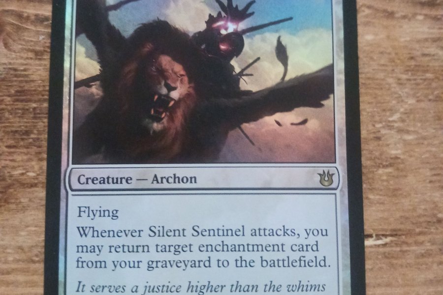 Magic the Gathering-kortet Silent Sentinel från 2014. Kortet är av typen varelse – arkon med flygförmåga. När Silent Sentinel attackerar får du ta tillbaka ett valfritt förtrollningskort från din kyrkogård till slagfältet. Kortet har styrkan 4 och tåligheten 6.