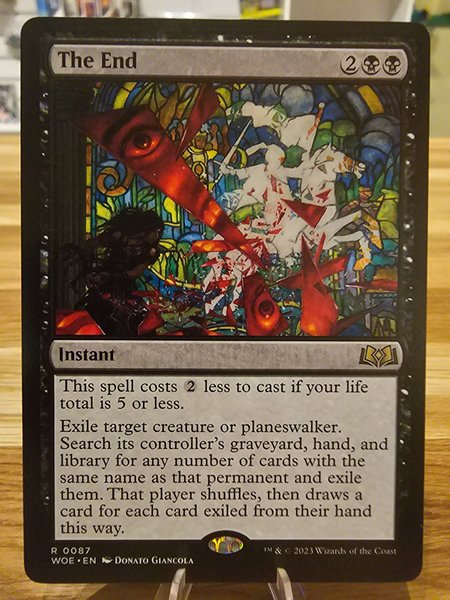 Ett Magic The Gathering kort. Kortnamn: The End. Utgåva: WOE. Artist: Donato Giancola.