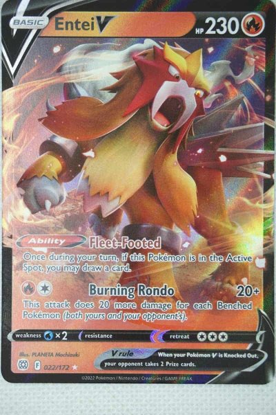 Pokemón Entei V 22/172 fra serien Brilliant Stars der udkom i Februar 2022.