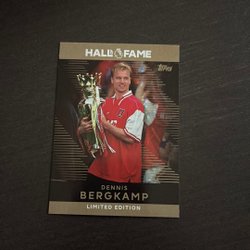 Ett samlarkort av Dennis Bergkamp från Topps, Legend Signature Style, utgiven i samband med EM 2024. Kortet visar Bergkamp i den holländska landslagströjan.