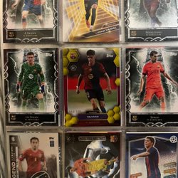 En samling fotbollskort med olika spelare och lag. Perfekt för samlare och fotbollsentusiaster.