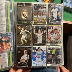 Samling av fotbollskort från olika ligor och turneringar. Perfekt för samlaren eller fotbollsentusiasten.