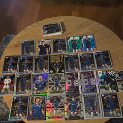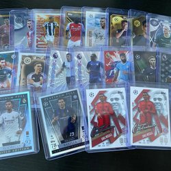 Samling av fotbollskort från olika serier och utgåvor. Perfekt för samlare!