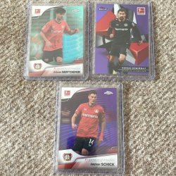 Säljer en samling fotbollskort med olika spelare och lag. Korten är från olika serier och utgåvor.