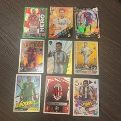 Säljer en större samling blandade fotbollskort från flera olika serier och år. Perfekt för samlare eller dig som vill bygga upp en rejäl samling direkt.
