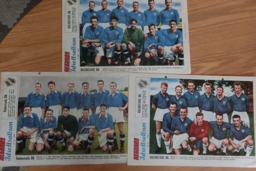 3 st lagbilder Halmstads BK från Rekordmagasinet. Bilderna är från åren 1956, 1958 och 1961.