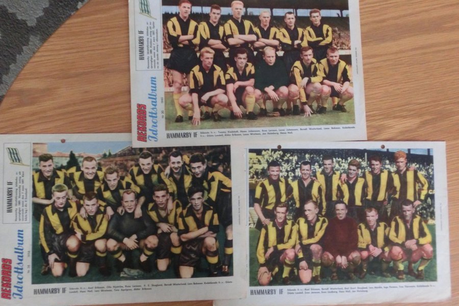 3 st lagbilder Hammarby IF fotboll publicerade i Rekordmagasinet. Bilderna är från pren 1958, 1960 och 1962.