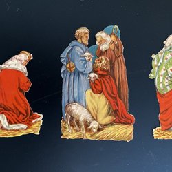 Ett ark med äldre bokmärken. Motiven inkluderar blommor, barn, djur och romantiska scener.