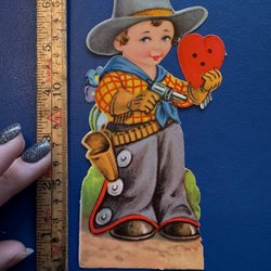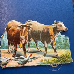 Ett gammalt bokmärke med motiv av en hand, en duva och blommor. Baksidan är vackert präglad.