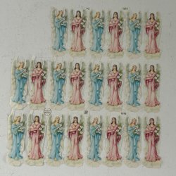 Bokmärken med motiv av änglar. Arket innehåller flera bokmärken i olika storlekar. Bokmärkena är i olika färger.