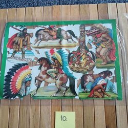 Parti med 15 pappersfigurer med indianmotiv. Figurerna är i varierande storlekar. En linjal är med på bild för storleksjämförelse.