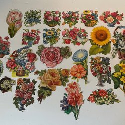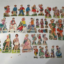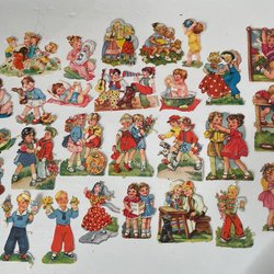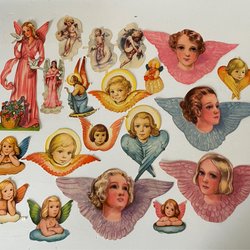 Ett album med äldre bokmärken, ca 240st. Bilderna föreställer änglar, barn, tomtar, djur, fordon, blommor och seriefigurer.