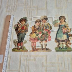 Bokmärken föreställande brudpar och tärnor/marskalkar. En flicka i rosa klänning med blommor, en pojke i kilt, en pojke i kostym med hatt och handskar, samt två brudar med slöjor och blomsterbuketter. Märkt ”No. 1482” och ”No. 1483”.
