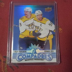 Hockeykort från Upper Deck med Connor Hellebuyck och Josh Morrissey. Kortet är från serien 2025-26 Upper Deck Series 1 Hockey. Se bilder för detaljer.