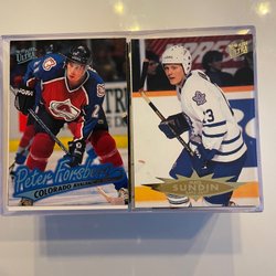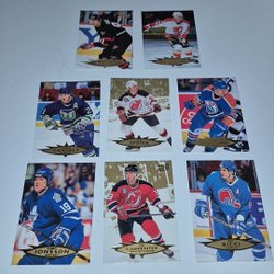 Ett parti ishockeykort med olika spelare och lag.