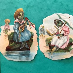 Tre antika bilder med motiv av unga kvinnor och duvor. Se bilder för detaljer.