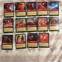 Blandat med kort från spelet Lorcana