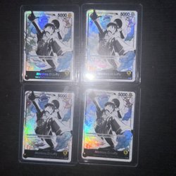 Disse One Piece-kort er en del af en samling, der indeholder forskellige karakterer fra serien. Kortene er designet med farverige illustrationer og detaljerede baggrunde, der afspejler One Piece-universet. Hvert kort viser en unik karakter med specifikke egenskaber og kampværdier, som er relevante for spillet. Kortene er beskyttet i individuelle plastlommer, hvilket bevarer deres udseende. De er velegnede til samlere eller spillere, der ønsker at udvide deres samling.