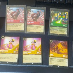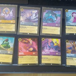 Blandat med kort från spelet Lorcana