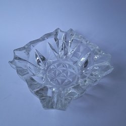 Ett askfat i glas med dekorativ design.