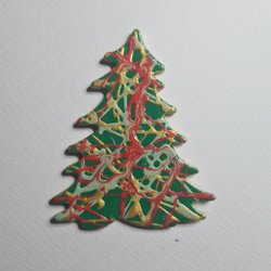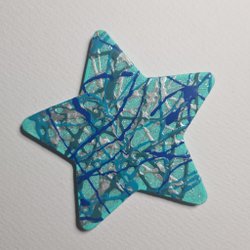 Tunn canvas med magnetisk baksida som kan håller papper vid kylskåpet målat med akrylfärg och glitter i form av en fjäril