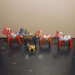 Tre Dalahästar i trä