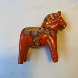 En klassisk dalahäst i trä.