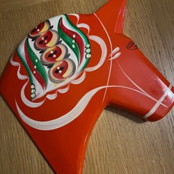 En klassisk dalahäst i trä, målad i en vacker röd färg med traditionella detaljer. Perfekt som en dekorativ detalj i hemmet eller som en fin present.