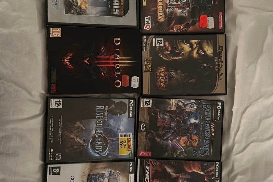 Samling av PC-spel. Inkluderar Command & Conquer Generals Deluxe Edition, Dawn of War, Diablo, Warcraft och fler. Se bilder för titlar.