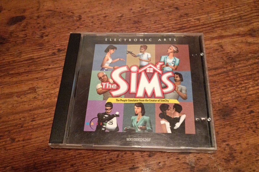 The Sims PC spel från Electronic Arts. Spelet är en livssimulator där spelare skapar och kontrollerar virtuella människor i en förortsmiljö.