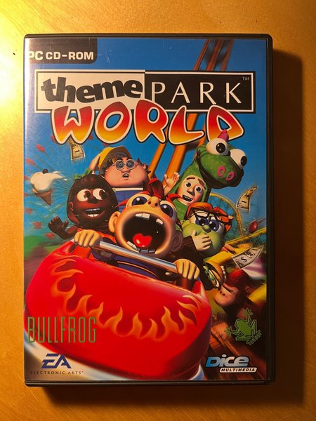 Theme Park World för PC CD-ROM. Utvecklat av Bullfrog och Electronic Arts.