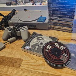 Sony PlayStation 1 konsol modell SCPH-5502 PAL i fullt fungerande skick. Medföljer 3st handkontroller, varav 2st original. Samt strömkabel och AV-kabel och 2 minneskort.