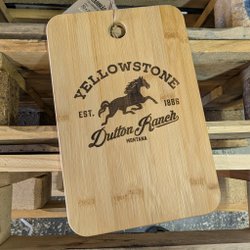 Tapasbräda/skärbräda i bambu, med en variant av DIFs logga lasergraverad på ena sidan. (Loggan i original går inte att bränna snyggt, därav modifiering.)