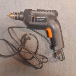 En äldre Black & Decker 3/8" elektrisk borrmaskin. Modell 2201. Tillverkad i England. Se bilderna, den fungerar bra.