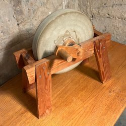 Slipsten med vev för handdriven slipning. Denna modell är utrustad med en slipskiva och en vev för manuell drift. Slipstenen är monterad på en stabil bas. Perfekt nu om krisen kommer.