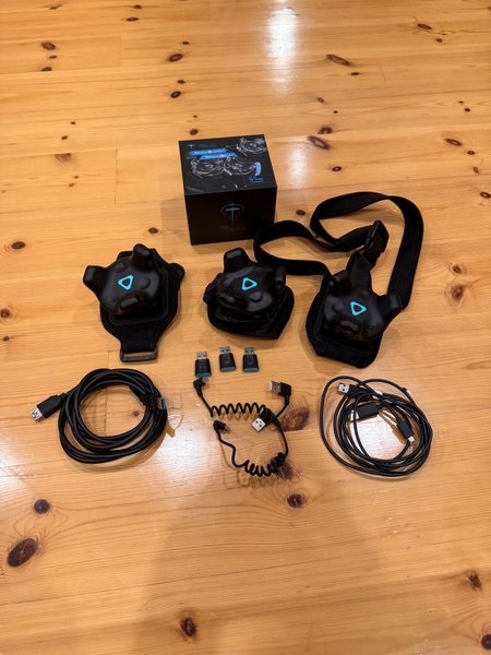Säljer tre HTC Vive Reality Trackers till VR. Inkluderar straps och kablar.