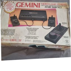 Säljer ett Gemini Video Game System. Det är en spelkonsol som använder kassetter gjorda för Atari 2600 VCS. Inkluderar avancerad joystick/paddel.