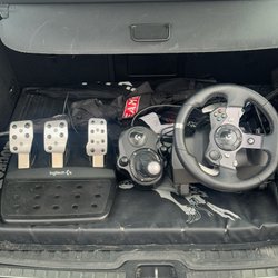 Logitech ratt och pedalset för en engagerande spelupplevelse. Designad för att ge responsiv kontroll och precision under körsimuleringar. Ratten har ett bekvämt grepp och pedalerna ger realistisk känsla för gas och broms. Kontakten till lilla runda uttaget