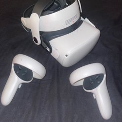 Meta Quest 2 VR-headset med 128 GB lagringsutrymme. Upplev virtuell verklighet med detta fristående headset. Kontroller ingår. Kommer med orginal kartong. Knappt använd.