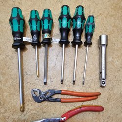 Bahco skruvmejslar i olika storlekar, en spårmejseln är det slipat på (syns på bild)