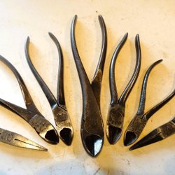 Två tänger för olika ändamål, en hovtång och en polygrip.