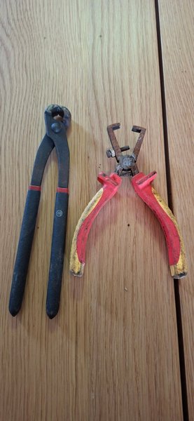 En uppsättning tänger, inklusive en avbitartång och en avisoleringstång.
