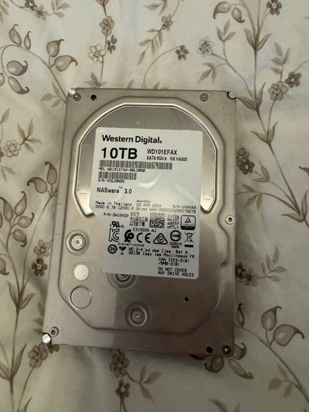 Western Digital 10TB som suttit i ett externt Elements chassi. Tänkte använda som intern men fick inte plats i datorn. Bara använts som lagring och för det mesta avstängd om jag inte behövt föra över.
