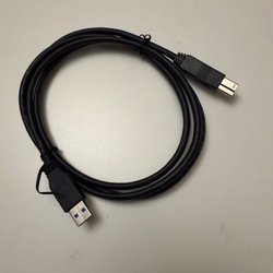 USB-kabel för anslutning av enheter. Kabeln har en USB-A-kontakt i ena änden och en USB-B-kontakt i den andra.