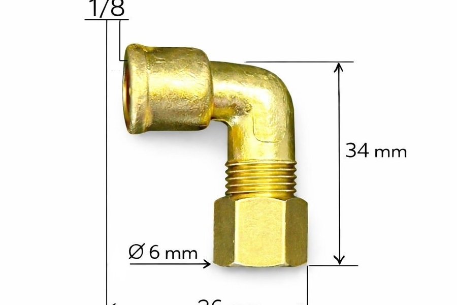 Koppling i mässing. (Se bild för mått) Vi har många i lager så behöver du fler så kontakta oss på Göta.