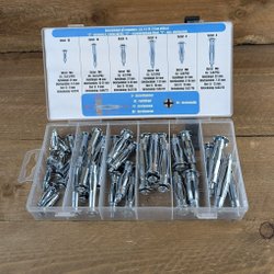 Praktiskt set med 160 st stoppskruvar i tumstorlekar, både UNC och UNF.